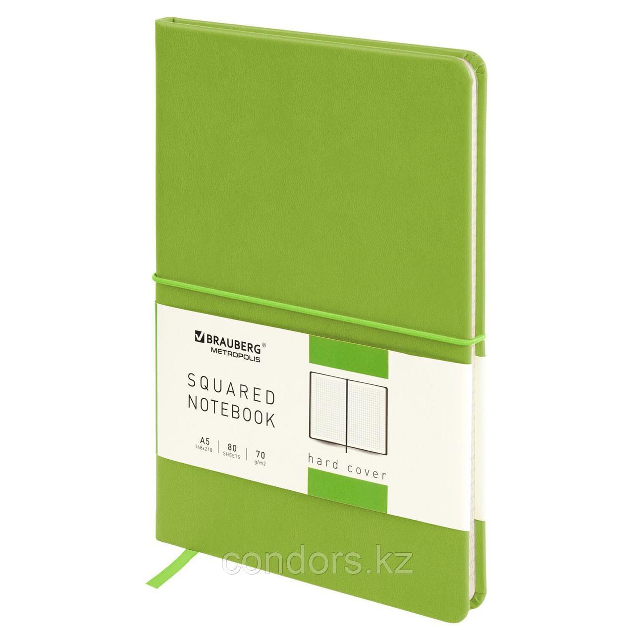 Отправка с 17 ноября 2025Блокнот А5 148x218 мм, BRAUBERG Metropolis X, под кожу, 80 л., резинка, клетка, светло-зеленый, 111033