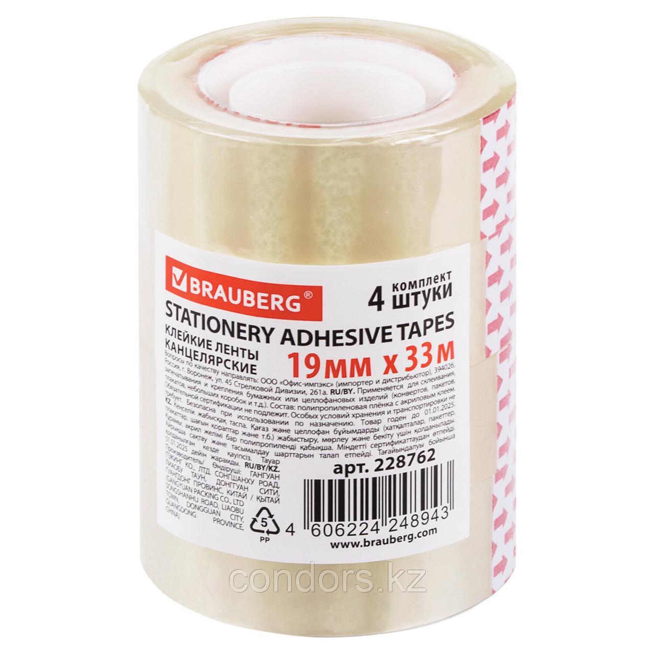 Отправка с 20 ноября 2025Клейкие ленты 19 мм х 33 м канцелярские BRAUBERG, КОМПЛЕКТ 4 шт., прозрачные, гарантированная длина, 228762