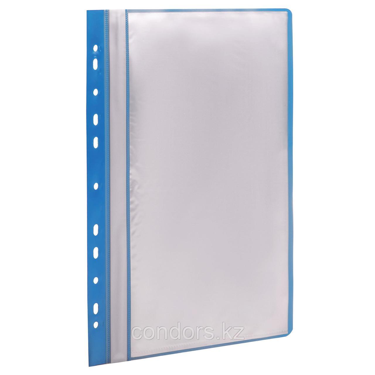 На корешке имеется карман для маркировки содержимого. Папка изготовлена из пластика толщиной 0,16 мм с антибликовой фактурой. Содержит 10 вкладышей, позволяющих хранить документы формата А4 и обеспечивающих их надежную защиту от попадания влаги, пыли и прочих повреждений, а универсальная перфорация на обложке папки позволяет подшивать ее в папки-регистраторы, папки со скоросшивателями и т.д.