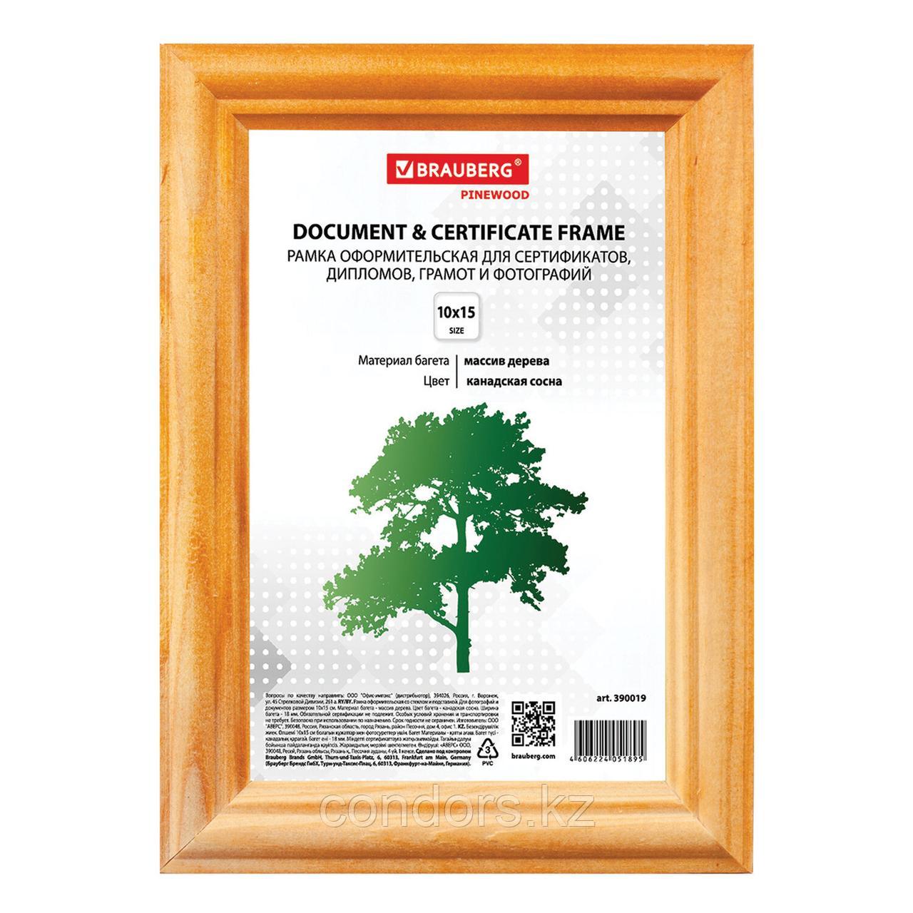 Отправка с 19 декабря 2025Рамка 10х15 см, дерево, багет 18 мм, BRAUBERG "HIT", канадская сосна, стекло, подставка, 390019