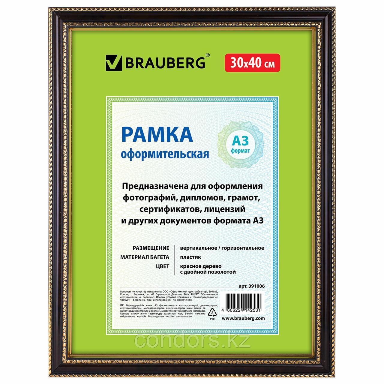 Отправка с 25 декабря 2025Рамка 30х40 см, пластик, багет 30 мм, BRAUBERG "HIT4", красное дерево с двойной позолотой, стекло, 391006