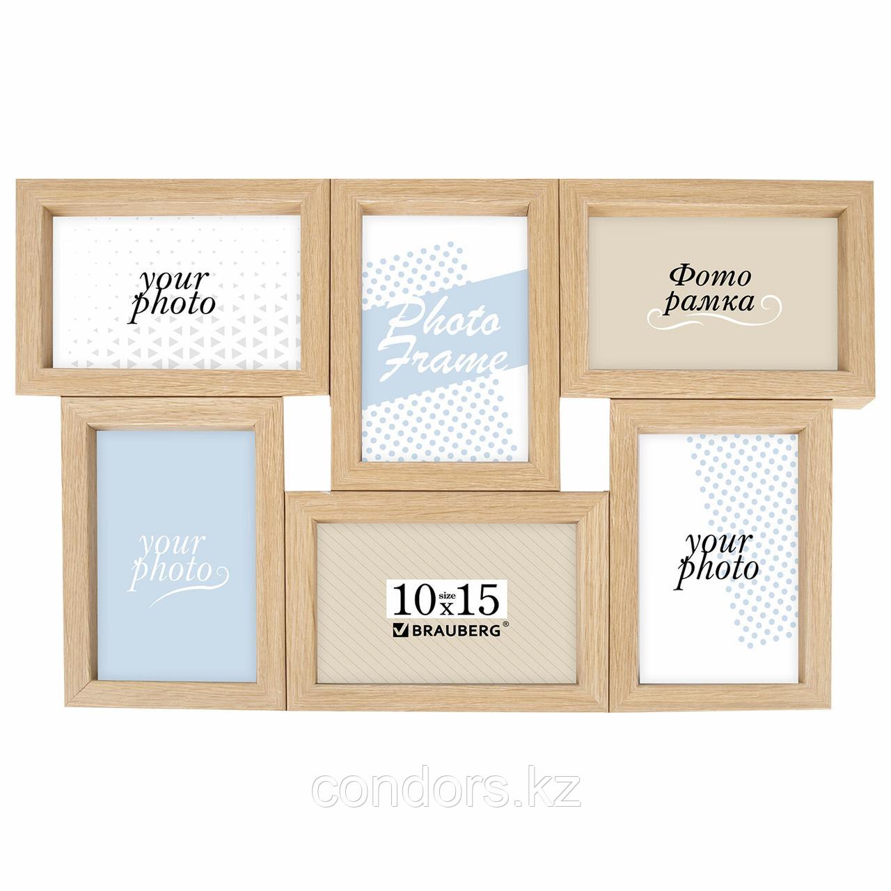 Отправка с 16 декабря 2025Рамка 10х15 см для 6 фото небьющаяся, багет 15 мм, МДФ, BRAUBERG "Collage", цвет мокко, 391262